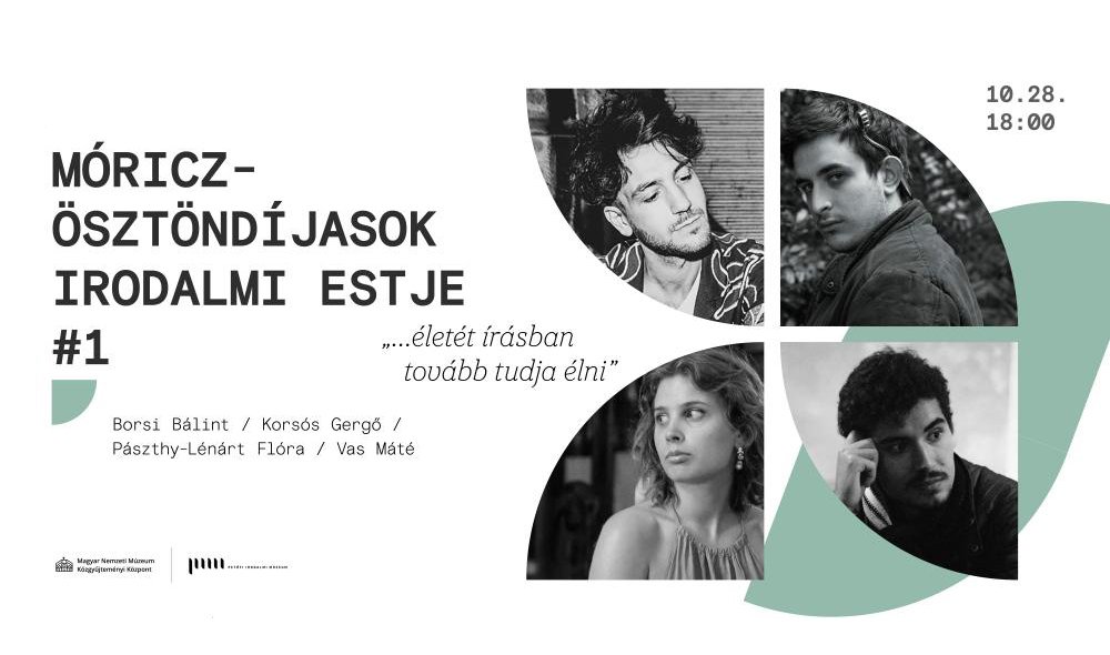 A Petőfi Irodalmi Múzeum október 28-án tartotta meg az előző év Móricz-ösztöndíjasait bemutató felolvasóestjét. Borsi Bálint, Korsós Gergő, Pászthy-Lénárt Flóra és Vas Máté olvasott fel verseiből, a költőkkel Mirtse Zsuzsa, a PIM ösztöndíjreferense beszélgetett.
